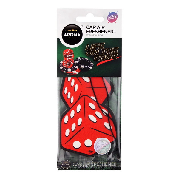 832768 Ароматизатор Aroma Car Cellulose Dices. Автомобільний ароматизатор Aroma Car із серії Life On the Edge – Dices (832768) – целюлозний освіжувач повітря, просочений рідкою парфумерною композицією. Ароматизатор ідеально підходить авантюрним, азартним людям – які ходять по межі, беруть від життя все та готові поставити "All In". Картонний ароматизатор Dices у вигляді двох гральних кісток завжди нагадають Вам, що ще не всі партії зіграні, що все ще попереду.