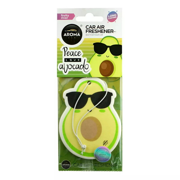 833918 Ароматизатор Aroma Car Cellulose Avocado Fruity River. Автомобільний ароматизатор Aroma Car Avocado - Fruity River (833918) – освіжувач повітря із спеціального целюлозного картону у вигляді підвіски, просоченого рідким ароматизатором. Зазвичай, цей тип ароматизаторів підвішують на дзеркало заднього виду в салоні автомобіля. Ароматизатор має приємний аромат - Fruity River (Фруктова річка).