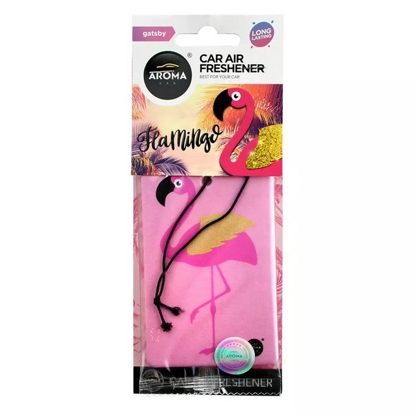 834021 Ароматизатор Aroma Car Cellulose Flamingo Gatsby. Автомобільний ароматизатор Aroma Car Flamingo - Gatsby (834021) - освіжувач повітря зі спеціального целюлозного картону у вигляді підвіски, просоченого рідким ароматизатором. Зазвичай, цей тип ароматизаторів підвішують на дзеркало заднього виду в салоні автомобіля. Ароматизатор має приємний аромат - Gatsby (Гетсбі).