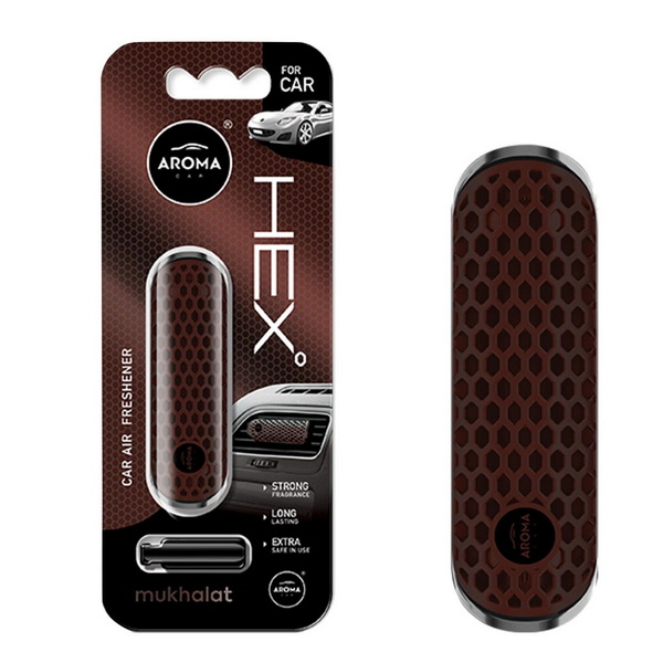 835783 Ароматизатор Aroma Car HEX Mukhalat. Автомобільний ароматизатор Aroma Car HEX - Mukhalat (835783) - це освіжувач повітря з полімеру, створений для водіїв, що цінують мінімалізм і сучасний дизайн. Поміщений на вентиляційну решітку, він забезпечує свіжість до 40 днів. Оригінальний аромат на основі французьких парфумерних композицій. Аромат - Mukhalat (мукхалат) зачаровує східно-ванільний парфум, що відноситься до універсальних. Це справжнє солодке запашне диво, спокушає смаковими відтінками. Технологія ароматизатора з використанням полімера - використання спеціального безпечного матеріалу, що містить в мікропорах ароматизатор, який виділяється в процесі випаровування. ІНСТРУКЦІЯ ІЗ ЗАСТОСУВАННЯ: Дістаньте товар із упаковки. Закріпіть ароматизатор за допомогою кліпси на вентиляційну решітку в салоні автомобіля.
