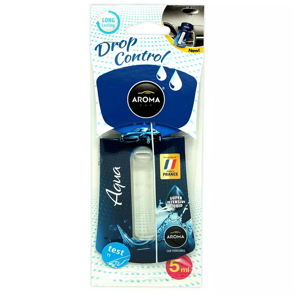 922868 Ароматизатор Aroma Car Drop Control Aqua. Автомобільний ароматизатор Aroma Car Drop Control - Aqua 5 мл (922868) — популярний ароматизатор з гібридною інноваційною технологією. У цьому ароматизаторі поєднані 2 технології - капілярне випаровування ароматичної рідини з колбочки через спеціальну наномембрану та ароматизація повітря в салоні автомобіля з поверхні спеціального пористого целюлозного картону.