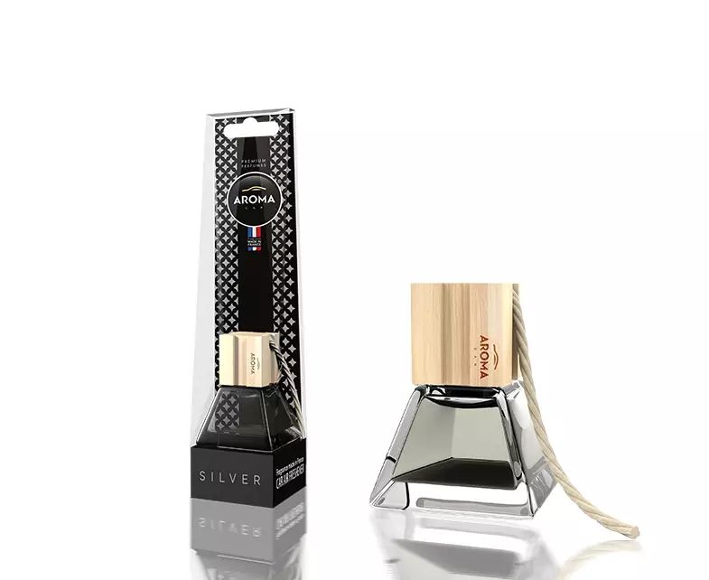 925319 Ароматизатор Aroma Car Prestige wood SILVER. Преміальний автомобільний ароматизатор серії Aroma Car Prestige Wood в скляному флаконі з парфюмированной композицією і дерев'яною пробкою — ось секрет сили освіжувача повітря. Prestige Wood - це не тільки унікальна пляшка в оригінальній упаковці, перш за все, це сила аромату, гарантована оригінальними французькими парфумами.