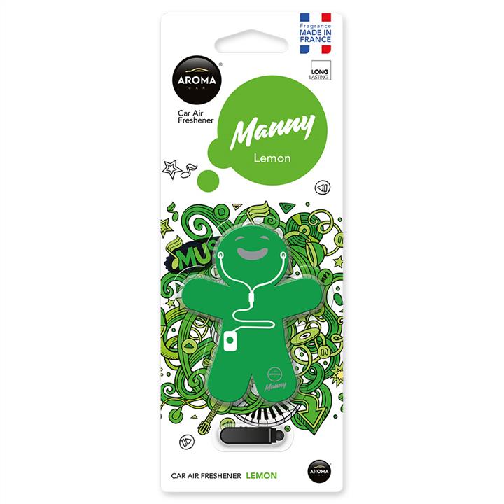 929959 Ароматизатор Aroma Car Manny LEMON. Ультрасучасний полімерний ароматизатор повітря Aroma Car із серії Manny, виконаний у формі чоловічка, необхідно використовувати на решітці вентиляції в салоні автомобіля. Ароматизатор можна застосувати як ароматизований брелок для ключів, як прикраса для сумочки, рюкзака або як оригінальний ароматизатор для гардероба, для цього в комплекті передбачено пластикове кільце. Ароматизатор має приємний аромат Lemon (Лимон).