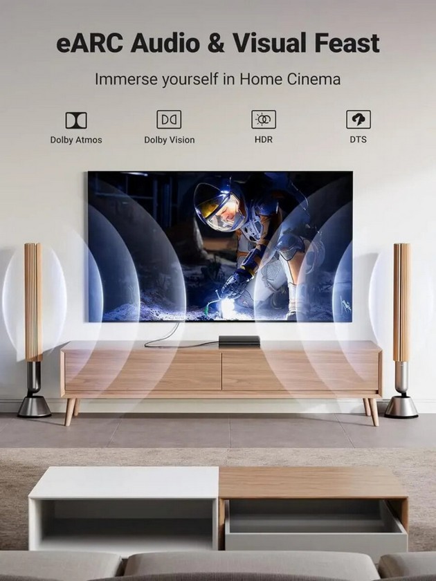 HDMI-перехідник Ugreen 8K підтримує всі новітні технології, включаючи HDCP2.3, HDR, Dolby digital 7.1, VRR та інші. Завдяки технології обробки динамічного HDR 8K кожна сцена оживе з оптимальною глибиною, яскравістю, деталізацією, контрастністю та кольором.