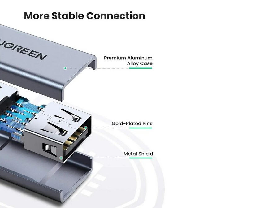 Чудова конструкція з корпусом із алюмінієвого сплаву гарантує, що він не зношується з плином часу. Унікальний металевий корпус не перегрівається під час тривалого використання, хороший вибір для USB-перехідника.