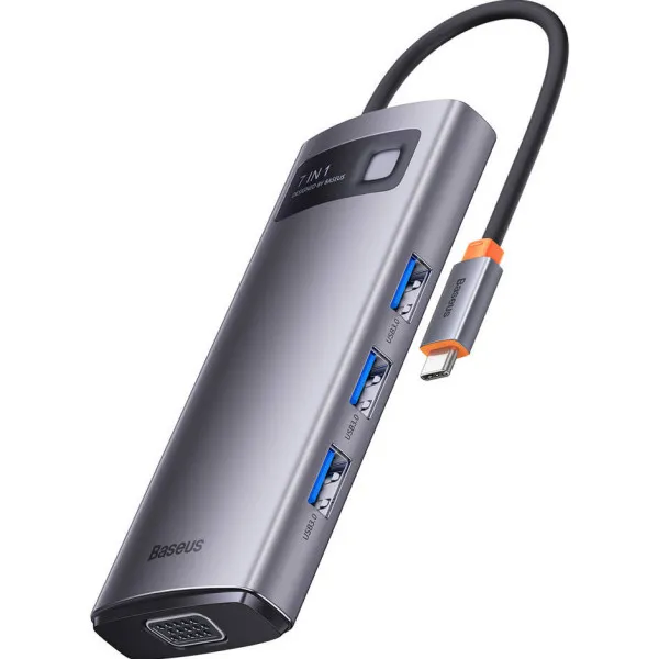 USB-Hub Baseus Metal Gleam Series 7-in-1 Multifunctional Type-C HUB Docking Station Gray (Type-C to HDMI*1+USB3.0*3+PD*1+VGA*1+RJ45*1) Baseus WKWG040013