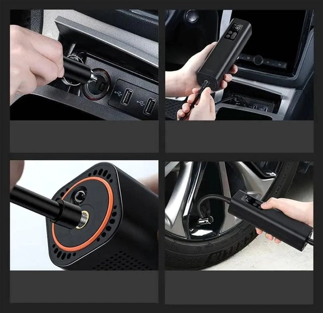 Напруга - 12 В Країна виробник - Китай Цикл роботи – 30 хвилин Додаткові характеристики: - Матеріал корпусу: АБС-пластик - Максимальний тиск: 150 PSI Комплектація: - компресор - шланг 18 см - Перехідник-конус - Велосипедна насадка - Голка для м'ячів розміри: 220 x 46 x 48 мм Вага – 0.48 кг Гарантія – 12 місяців