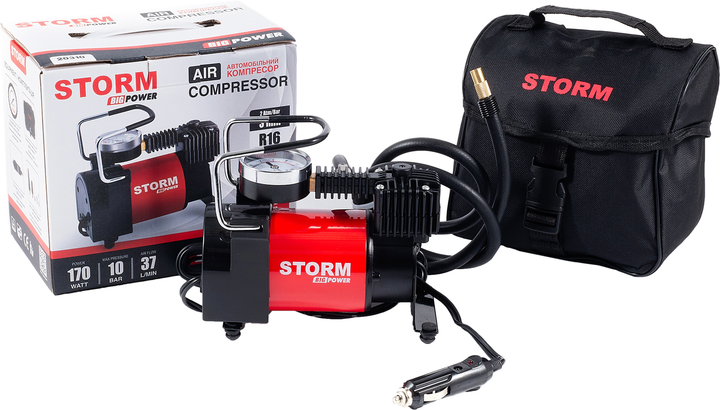 STORM Компресор автомобільний Big Power 10 Атм, 37 л/хв, 170 Вт. Компресор автомобільний STORM Big Power 10 Атм, 37 л/хв, 170 Вт металева накладка