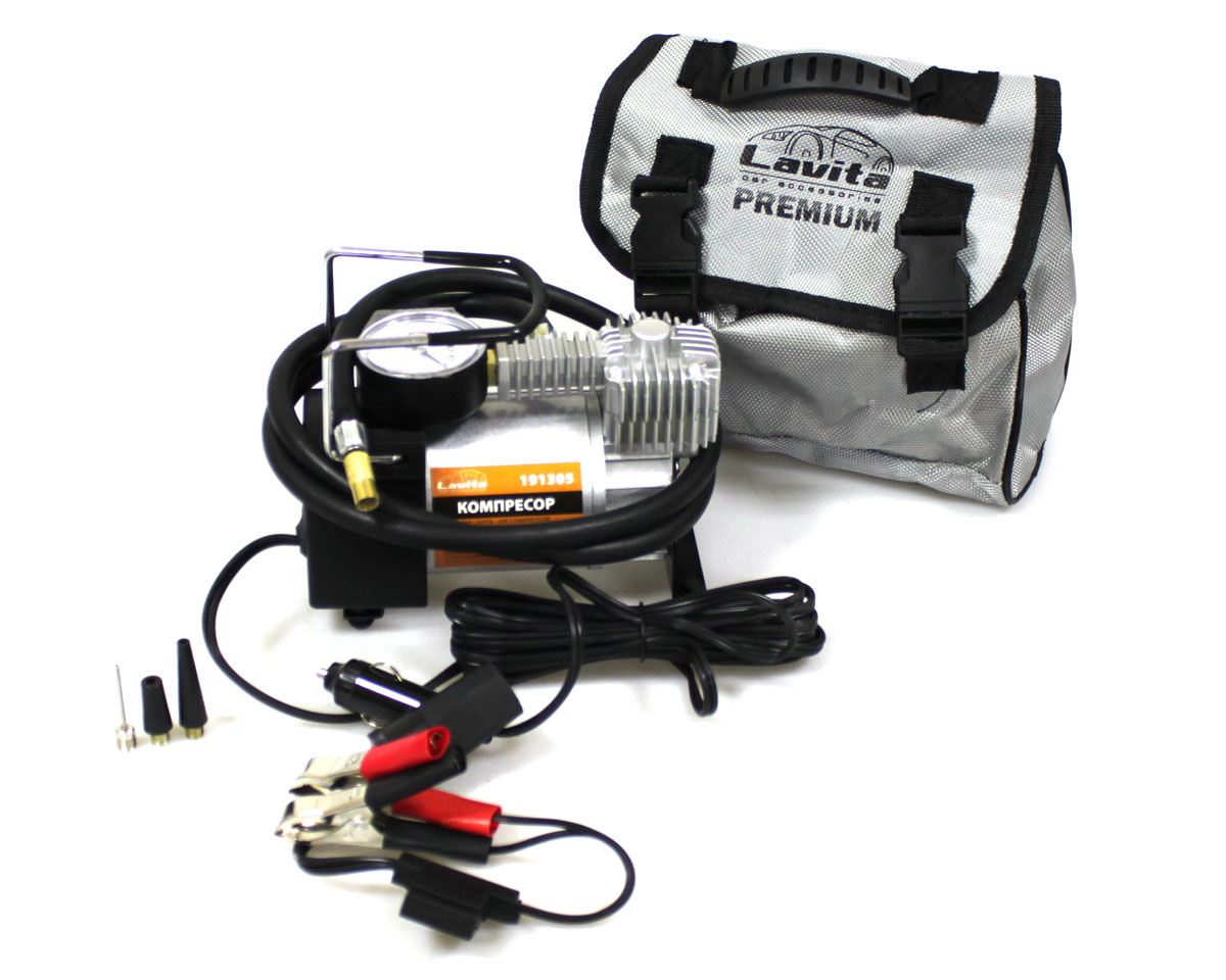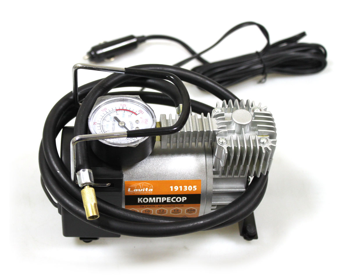 Компресор призначений для накачування повітрям шин автомобілів. Швидкість накачування 37 л/хв. дозволяє створювати тиск до 10 атм. Живлення може відбуватись як від клем акумулятора, так і від прикурювача. Потужний двигун збільшує моторесурс виробу. В комплект входять насадки для накачування м'ячів, матраців, човнів і шин велосипедів, а також сумка-чохол для зберігання і транспортування.