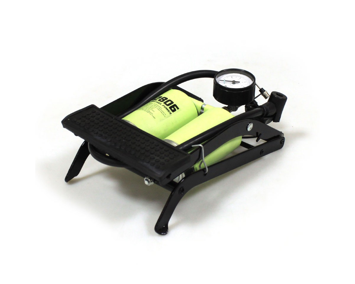 Ножний насос двоциліндровий, має металевий корпус, оснащений манометром для контролю за тиском повітря в шині. Характеристики: Виробник STEEL POWER Тип Ножні насоси Призначення автомобільні насоси Максимальний тиск 7 атм Кількість поршнів двопоршневі насоси Наявність манометра так Матеріал циліндра метал Розмір циліндра 55х100мм Робочий об'єм циліндра 480 см3 Довжина шланга 55 см ІНСТРУКЦІЯ З НАКАЧУВАННЯ ШИН 1. Встановіть колесо так, щоб ніпель був розташований якомога ближче до землі. 2. Встановіть насос на тверду, рівну, горизонтальну поверхню поряд з колесом. 3. Підіжміть педаль насосу і відведіть скобу-фіксатор, та дайте педалі піднятися. 4. Встановіть штуцер на ніпель колеса, та переконайтеся що немає витоку повітря. 5. Перевірте тиск за допомогою манометра. 6. Переконайтеся, що шланг насосу не перекручений, не натягнутий та не затиснутий між металевими елементами конструкції. 7. Плавними, впевненими рухами натискайте на педаль та накачуйте колесо до необхідного тиску. 8. Коли необхідний рівень тиску досягнутий, від’єднайте штуцер. 9. Закріпіть педаль насоса за допомогою скоби-фіксатора. УВАГА! Стежте за показниками манометра під час накачування. Не створюйте тиск в шині більше ніж рекомендований виробником транспортного засобу! ДОГЛЯД ТА ЗБЕРІГАННЯ 1. Підтримуйте чистоту насоса; 2. Після кожного використання очищуйте та протирайте зовнішню поверхню насоса сухою тканиною. 3. Періодично перевіряйте цілісність повітряного шлангу. 4. Якщо насос використовувався під дощем або у вологому середовищі, після використання ретельно протріть його сухою тканиною.
