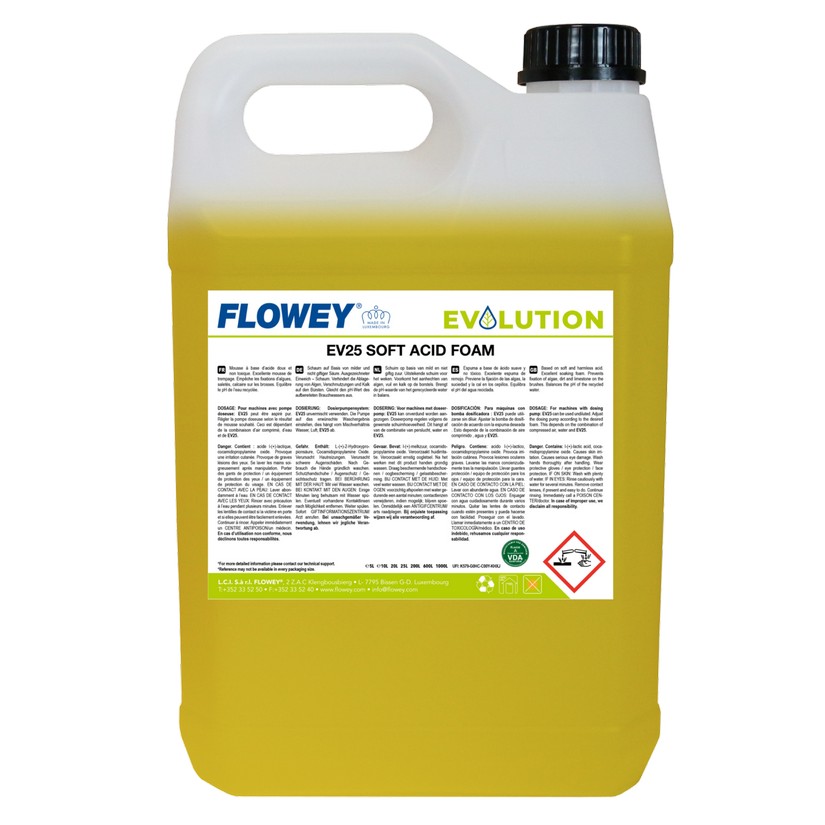 Кислотний автошампунь FLOWEY ACID FOAM ЕV25 - 1 л. Кислотний автошампунь. Шампунь, що сильно піниться, відмінно підходить для портальних і тунельних мийок, обладнаних текстильними щітками (felts) і щітками carlite, а також для ручних автомийок для миття за допомогою губки.