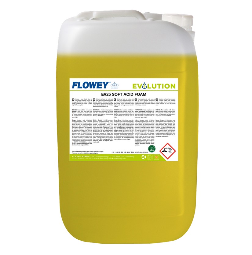 Кислотний автошампунь FLOWEY ACID FOAM ЕV25 - 25 л. Кислотний автошампунь. Шампунь, що сильно піниться, відмінно підходить для портальних і тунельних мийок, обладнаних текстильними щітками (felts) і щітками carlite, а також для ручних автомийок для миття за допомогою губки.