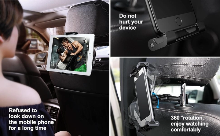 Підставка під планшет/телеф 4,7"-12,9" розсувна на підголовник з ніжками 140-180 мм Baseus