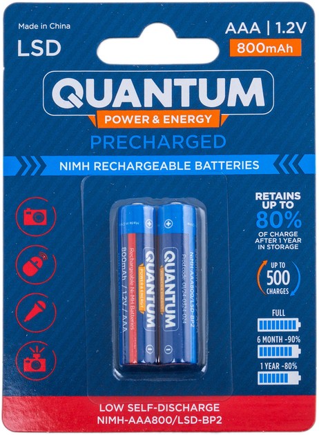 Акумулятор Ni-MH з низьким саморозрядом (LSD) Quantum 800mAh AAA, 2шт/уп blister