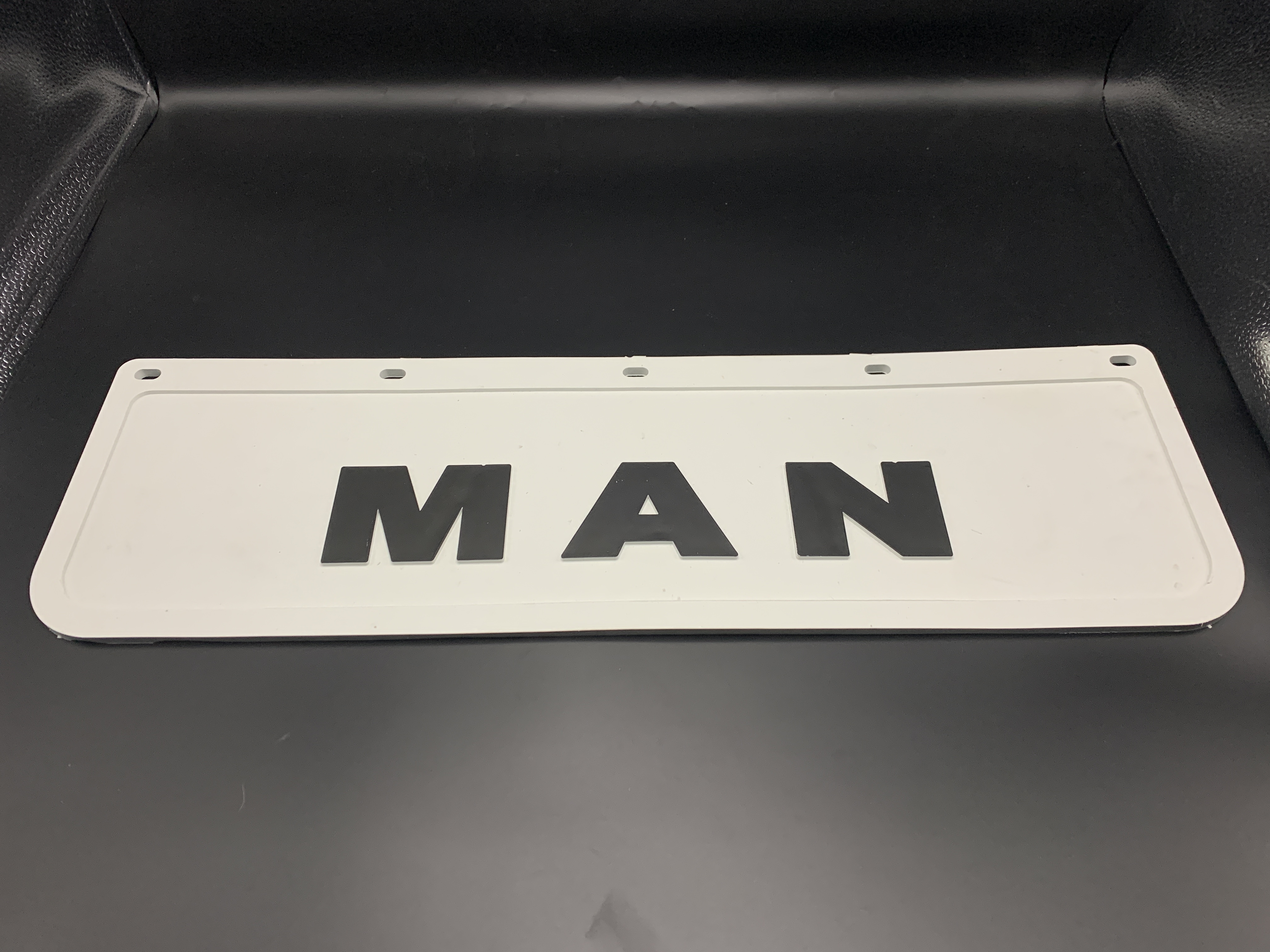 Бризковик на крило кабіни з об'ємним малюнком "MAN" 180"600 білий GURBUZ PLASTIK (GP0605)