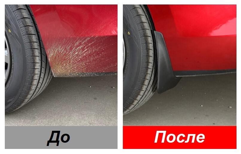 Брызговики являются важной и незаменимой частью автомобиля, их нужно устанавливать обязательно за всеми четырьмя колёсами. Передние брызговики защитят от повреждение лакокрасочного покрытия деталей кузова и днище автомобиля, вследствие чего предотвратят преждевременное появление коррозии. Задние брызговики помимо этого защитят другие транспортные средства, которые едут позади вас от вылетающих из-под колёс камней. Так же к достоинствам можно добавить то, что установка брызговиков занимает не много времени и по силам даже не профессионалам.