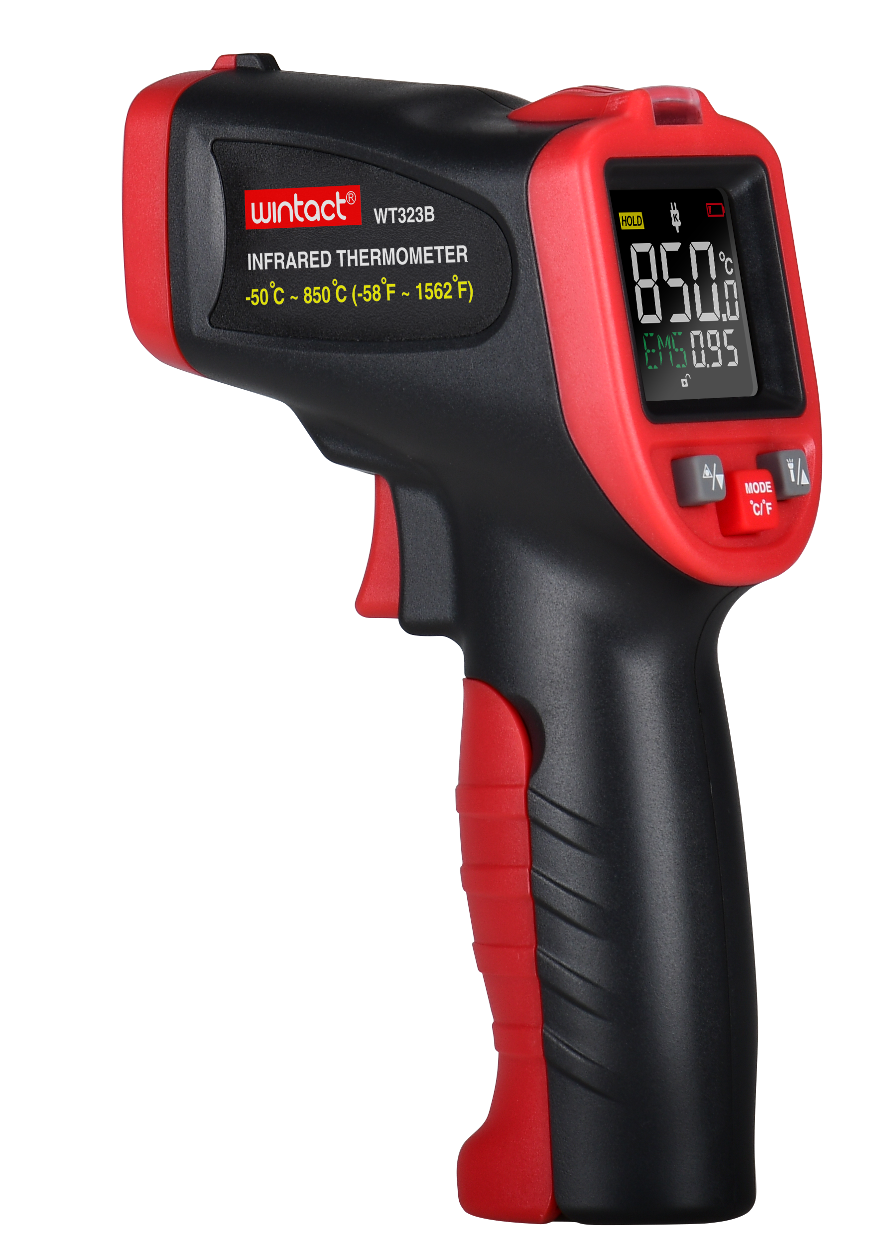 Безконтактний інфрачервоний термометр (пірометр) цв дисплей, термопара -50-850°C, 12:1, EMS=0,1-1 WINTACT WT323B