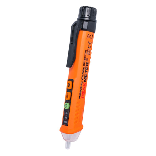 Детектор напруги PROTESTER PM8909 допомагає знайти напругу змінного струму в розетках, подовжувачах, вимикачах, розподільних коробках та кабелях безконтактним способом у двох діапазонах 12-1000 В та 48-1000 В. Мініатюрний та простий у зверненні прилад, сигналізуючий рівня сигналу, яскраве світло. Має функцію автоматичного відключення та вимикається після 3-х хвилин бездіяльності. Оснащений спеціальною кліпсою, що дозволяє кріпити детектор напруги на кишеню та має вбудований ліхтарик, завдяки чому може бути застосований для роботи у погано освітлених приміщеннях. Прилад виконаний з міцного пластику і розрахований на тривалу експлуатацію. Особливості: Вбудований ліхтарик Діапазон вимірювань: 12-1000В / 48-1000В Індикація низької напруги батарей Звукова та світлова індикація Автоматичне відключення живлення Відповідність стандартам безпеки: CE CAT.III 1000V, CAT.IV 1000V.
