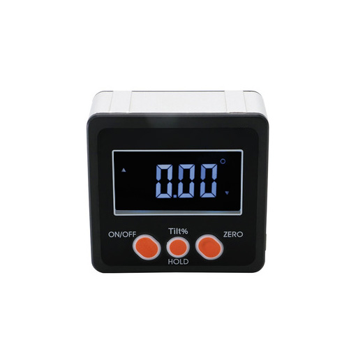 Кутомір PROTESTER 5415-90B стане корисним для людей, які професійно займаються слюсарними, столярними, будівельними роботами. З його допомогою можна швидко і точно визначити кут нахилу горизонтальної або вертикальної поверхні, що буде корисно, наприклад, при виготовленні меблів, установці напрямних для гіпсокартонних конструкцій і т.п. Завдяки наявності магнітних тримачів, інклінометр легко і надійно встановлюється на металеві поверхні. Переваги та особливості цифрового кутоміра PROTESTER 5415-90B: Пластиковий корпус. Для встановлення та надійної фіксації на металевих поверхнях кутомір оснащений магнітними тримачами, які знаходяться на нижній стороні корпусу пристрою. Функція ZERO – встановлення нуля. Дозволяє контролювати відхилення від заданої площини. Інформація відображається на LCD дисплеї діагоналлю 1,8". HOLD/Tilt% - фіксація значення виміряного кута. Також за допомогою цієї кнопки можна переключити одиниці вимірювання з градусів на відсотки (для вимірювання нахилу у відсотках). Для цього потрібно натиснути та утримувати цю кнопку протягом 2 секунд.