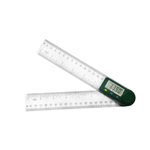 Кутомір (транспортир, малка) PROTESTER 5423-200 (200мм) чудово справляється з високоточним виміром кутів. Прилад має 2 лінійки. Вони виготовлені з товстого листа сталі. На лінійці нанесена метрична та дюймова система вимірювання. РК-екран показує градус кута і працює від круглої батареї CR2032, що вставляється в екран збоку. Щоб підготувати пристрій до роботи, зведіть разом 2 лінійки. Потім натисніть кнопку On/Off. Далі розводьте лінійки до того часу, поки вони утворюють потрібний кут. Його значення з'явиться на екрані. Затримати його можна кнопкою Hold. Вона допоможе показати зворотне значення кута. Zero обнулює отримані цифри. Також у кутоміра є кнопка вибору одиниць виміру кута градуси/хвилини. Дана модель – компактна і легко уміститься у рюкзак. У продажу також є кутомір із лінійками 30 см.