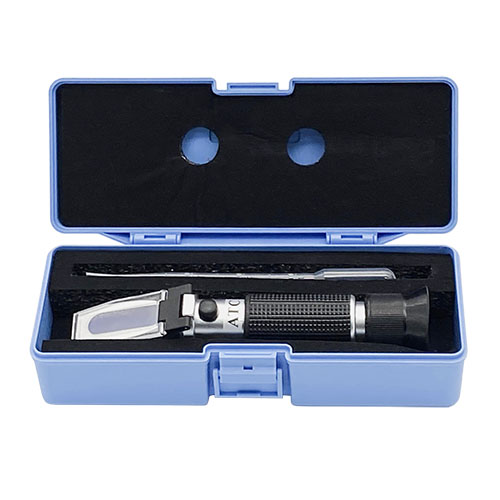 Рефрактометр - це спеціальний прилад, який використовується для вимірювання показників заломлення рідин, зокрема електроліту, антифризу (етиленгліколю та пропіленгліколю) та омивача, що використовуються в автомобільній індустрії. Цей рефрактометр дозволяє оперативно та точно виміряти концентрацію рідини та оцінити її властивості. Він забезпечує зручність використання та швидкість вимірювання, що робить його незамінним інструментом для механіків, автомобільних фахівців та інших професіоналів, які працюють з рідинами в автомобільній галузі. Цей рефрактометр зазвичай має масштаби або шкали, що відповідають конкретним рідинам, таким як електроліт, антифриз та омивач. Під час вимірювання рідину наносять на призму рефрактометра і зчитують показник заломлення, що відбиває концентрацію речовини рідини. Результати вимірювань на рефрактометрі можуть бути виражені в різних одиницях вимірювання залежно від шкали, яка використовується у конкретній моделі приладу. Наприклад, концентрація етанолу в антифризі може бути виражена у відсотках маси або об'єму, а концентрація електроліту – у балах. Цей рефрактометр дозволяє заощадити час та зусилля, оскільки в одному приладі поєднані можливості вимірювання різних рідин. Він має компактний дизайн, легко переноситься та зручний у використанні.