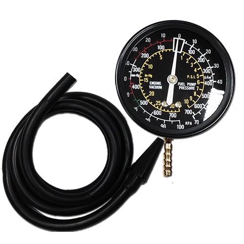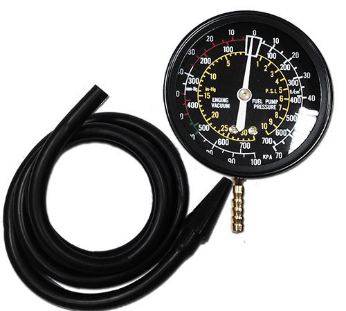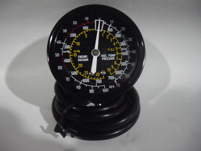 Конфігурація: шкала поділу 63мм із кольоровим позначенням; діапазон допустимих вимірів: 0-0.7 кг/см.кв., 0-760 мм ртутного стовпа. Застосування: регулювання карбюратора; вимірювання тиску турбонаддуву; Тестування паливного насоса. Дозволяє виявити несправності наступного типу: перебої у роботі свічок запалювання; низький ступінь стиснення в двигуні; збідненість або збагаченість паливної суміші; випередження чи відставання запалення; підсмоктування повітря через карбюратор та впускний колектор; порушення фаз газорозподілу; надмірна витрата палива. Застосування: регулювання карбюратора вимірювання тиску турбонаддуву Тестування паливного насоса. Дозволяє виявити несправності наступного типу: перебої у роботі свічок запалювання низький ступінь стиснення у двигуні | збідненість чи збагачуваність паливної суміші | випередження чи відставання запалення | підсмоктування повітря через карбюратор та впускний колектор | порушення фаз газорозподілу надмірна витрата палива.