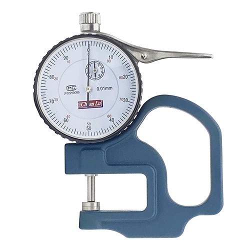 Індикаторний товщиномір – це вимірювальний інструмент, який використовують для контролю товщини паперу, поліетиленової плівки, текстилю, шкіри, фольги тощо. За допомогою індикатора дуже просто і швидко можна порівняти результати вимірів з еталоном. Діапазон виміру від 0 до 12,7 мм. Товщиномір виконаний у міцному металевому корпусі, зібраний якісно, повністю відсутні будь-які зазори та люфти.