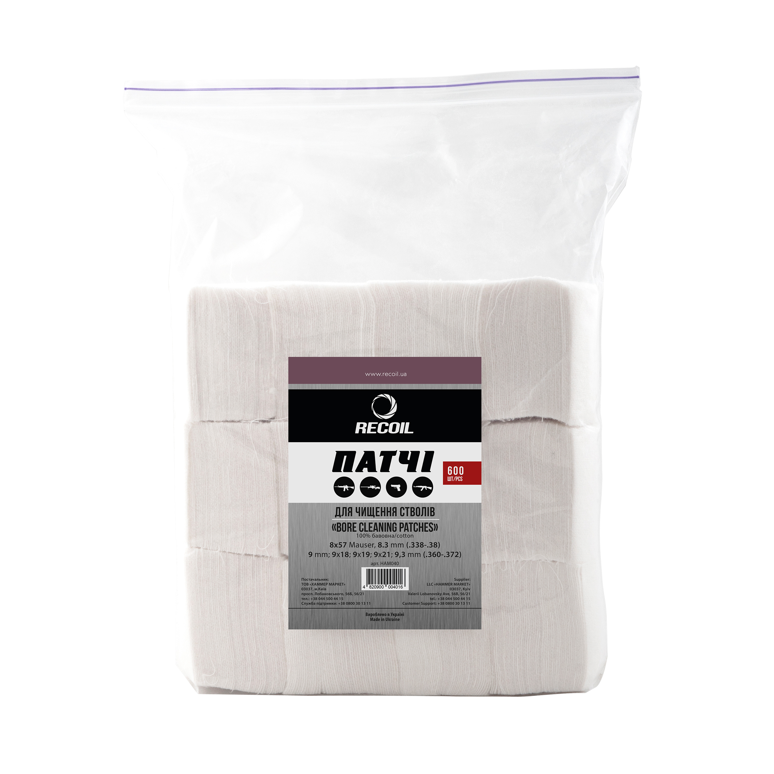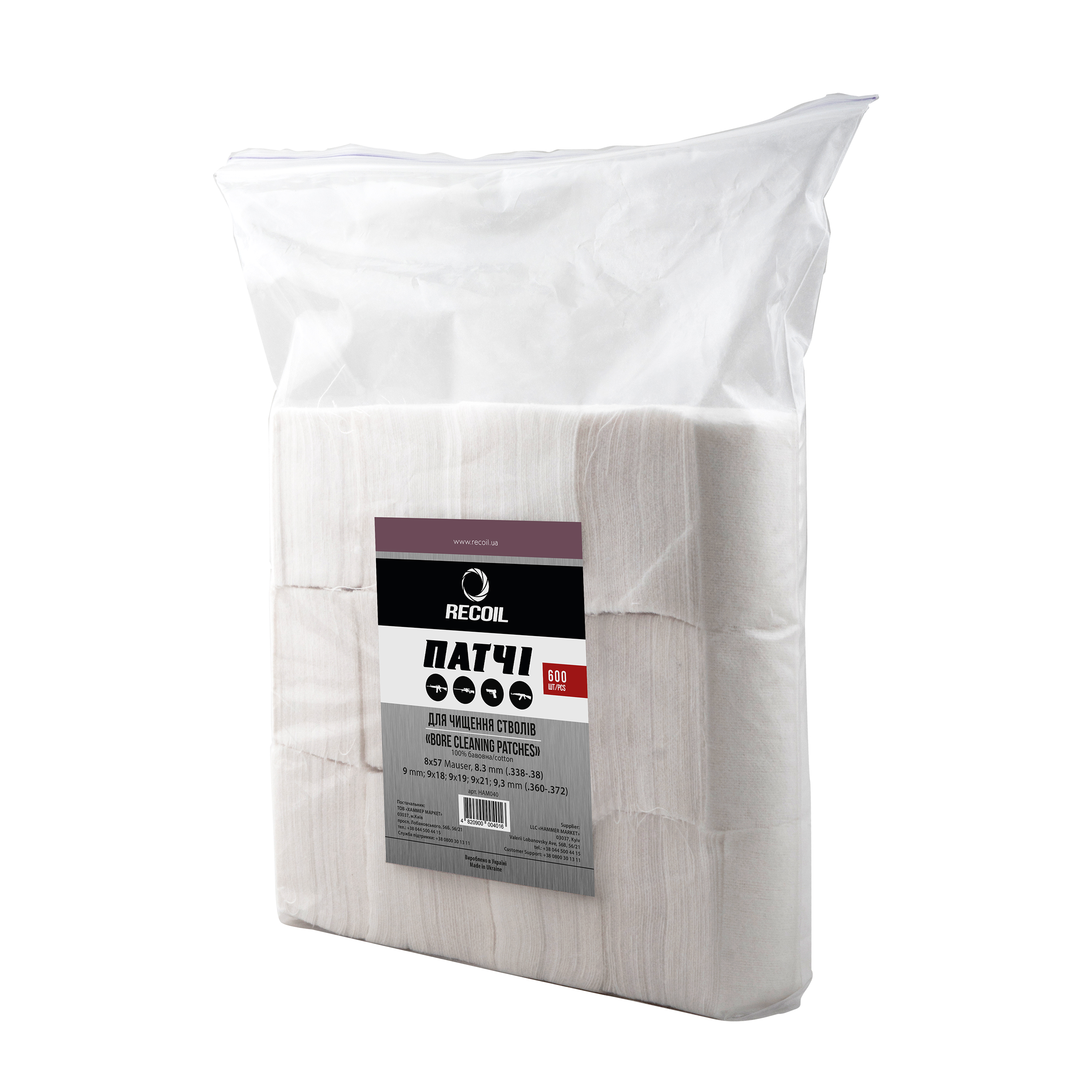 Патчі для чищення стовбурів калібру RECOIL (HAM040)