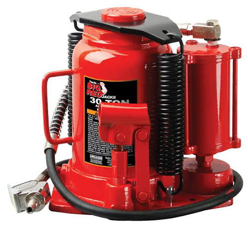 Домкрат пневмогідравлічний 30т 250-405 мм TORIN TRQ30002. Його вантажопідйомність становить максимум 30 тонн. При цьому такий пристрій може функціонувати в ручному режимі і на пневмоприводе. Разом з домкратом йде повітряний шланг, що дає можливість застосовувати обладнання з різними видами транспорту. Домкрат пляшковий пневмогідравлічний 30т TORIN TRQ30002 підходить для СТО, а також може бути використаний в домашніх умовах.
