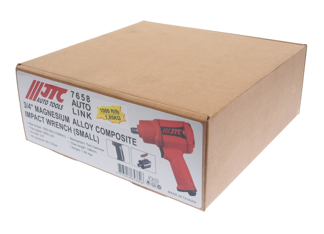 Комплектація Пневмогайковерт ударний - 1 шт. Призначений для ремонтних робіт з можливістю використання ударного механізму. Ударний механізм; Twin Hammer, низька вібрація, вал виготовлений з високоміцної сталі SNCM616. Особливістю конструкції ротора є пружні лопаті. Вхідний клапан забезпечує плавність роботи. Технічні характеристики Максимальні обороти: 8500; Робочий тиск: 6,1-8,1 атм. Максимальний момент, що крутить:;1356 Nm (1000ft-lb) Ударний механізм: Twin Hammer. Розмір повітряного штуцера: 1/4; Посадковий квадрат: 3/4; Довжина: 198 мм. Маса нетто: 1850 гр.