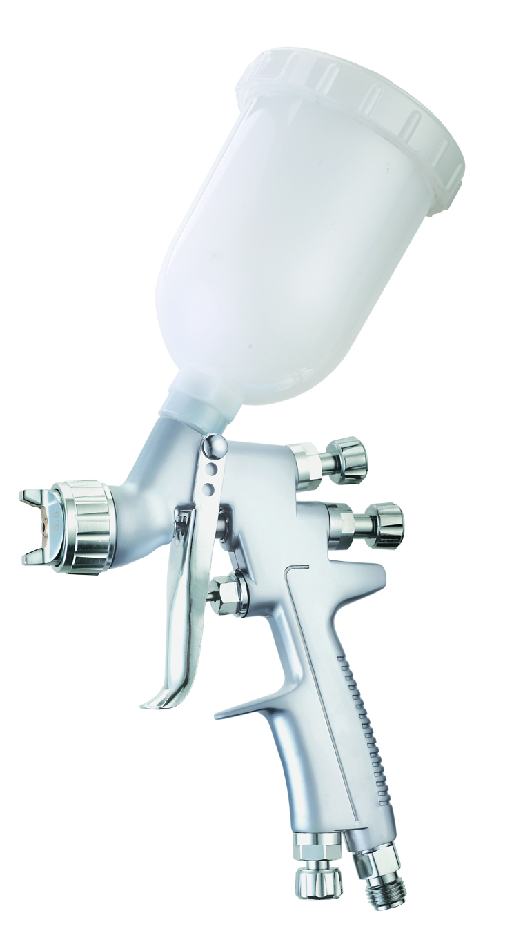 Краскопульт пневматичний тип HVLP верхній пластиковий бачок 250мл, діаметр форсунки – 0.8мм. Тип HVLP - великий потік повітря та низький тиск на виході підходить для нанесення найтонших шарів фарби та економить до 30% фарби. професійний фарбопульт, який призначений для роботи з різними видами ЛКМ; використовується для стартових та фінішних робіт; екологічна система розпилення HVLP (великий потік повітря, низький тиск) застосовується для тонкого розпилення і досягнення оптимального співвідношення якість/ефективність; високий коефіцієнт перенесення ЛКМ (до 70%); економічна витрата ЛКМ; мале туманоутворення і мінімальна кількість частинок на поверхні, що фарбується; регулювання подачі повітря, фарби та ширини факела розпилення. Більш детальну інформацію можна знайти в нашій статті "Як вибрати пневматичний фарбокопульт для автомобіля?".