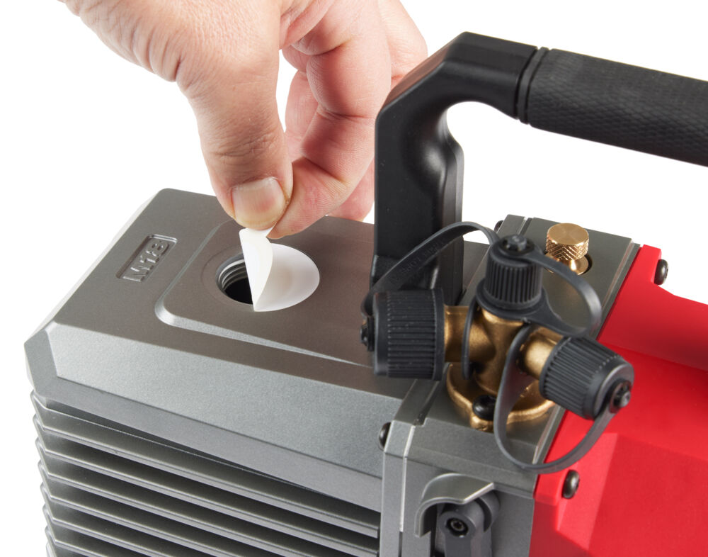 Двоступінчастий акумуляторний вакуумний насос всмоктує частинки до 25 мікронів зі швидкістю потоку 142 л/хв. Впускні отвіри (порти) 1/2'', 3/8'' та 1/4''.