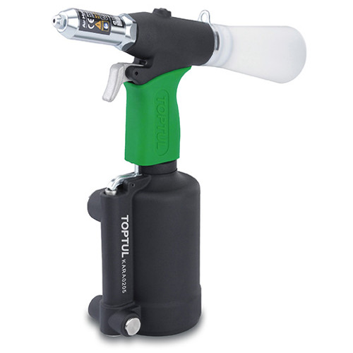 Заклепник пневмогідравлічний 2.4-5.0 мм TOPTUL KARA0205B. Підходить для заклепок з алюмінію/сталі та неіржавкої сталі. Призначений для професійної клепки та безперервної роботи. Конструкція з подвійним повітрозабірником дає змогу легко працювати з правою або лівою рукою.