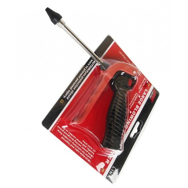 Трубка 8 мм. і конусовидний вихідний отвір забезпечують оптимальний потік повітря для продування. З ергономічною вичавною рукояткою для економії зусилля та металевим перехідником у місці підключення повітряного штуцера. Робочий тиск: 15 кг/см3. Витрата повітря: 120 л/хв, при 150 psi. Вихідний отвір трубки: конічний. Довжина трубки: 50 мм. Вхідний отвір: 1/4.