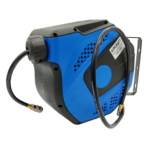 Настенная автоматическая катушка для пневматического шланга AIRKRAFT AHC-35C, используемая вместе с пневматическими инструментами.