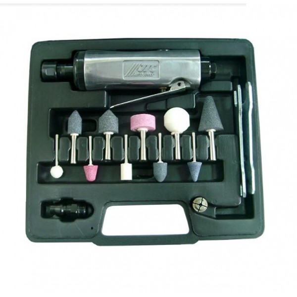 Комплектація Машинка пневматична шліфувальна 3822K; JTC. Набір каменів - 10 од. Утримувач - 1 од. Ключі – 2 од. ; Призначений для шліфування різних поверхонь. ; Технічні характеристики Швидкість обертання: 22000 об/хв. Патрон: 6 мм (1/4;). Розмір повітряного штуцера: 1/4; Робочий тиск: 6,1 атм. Витрата повітря: 350 л/хв. Загальна довжина: 175 мм. Відведення повітря: ззаду. ; Важливі рекомендації Заборонено подавати високий тиск у систему більше 8 бар. Заборонено використання пневмоінструменту за температури, близької до 0;C. Уникайте потрапляння піску та бруду всередину пневмоінструменту. Бруд і пісок працюють як абразив і стирають пелюстки крутного механізму. Уникайте потрапляння води всередину корпусу. Наявність води призводить до корозії та руйнування крутного механізму. Один раз на три місяці необхідно проводити профілактичне чищення пневмоінструменту. Посадковий квадрат, пружини, кільця ущільнювачів, ущільнювачі, підшипники, лопатки ротора, металеві кульки, золотник клапана пневматичного інструменту - якщо такі входять в конструкцію даної моделі, є витратними матеріалами, і не покриваються гарантійними зобов'язаннями виробника у разі деформації або пошкоджень. ; Обов'язкова умова Заявлені технічні параметри пневмоінструмент показує тільки при дотриманні всіх вимог, що пред'являються до якості та обсягу повітря, що подається, а також до умов експлуатації. Обов'язковою умовою експлуатації є встановлення в пневмолінію блоку підготовки повітря, що складається з: регулятора тиску; вологовідділювача; лубрикатора для подачі мастила в робочий простір пневмоінструменту.