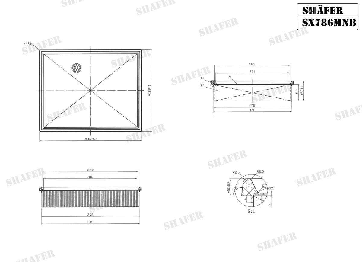Фільтр повітряний VW T5, 03-, (з сіткою - упаковка поліетиленовий пакет)