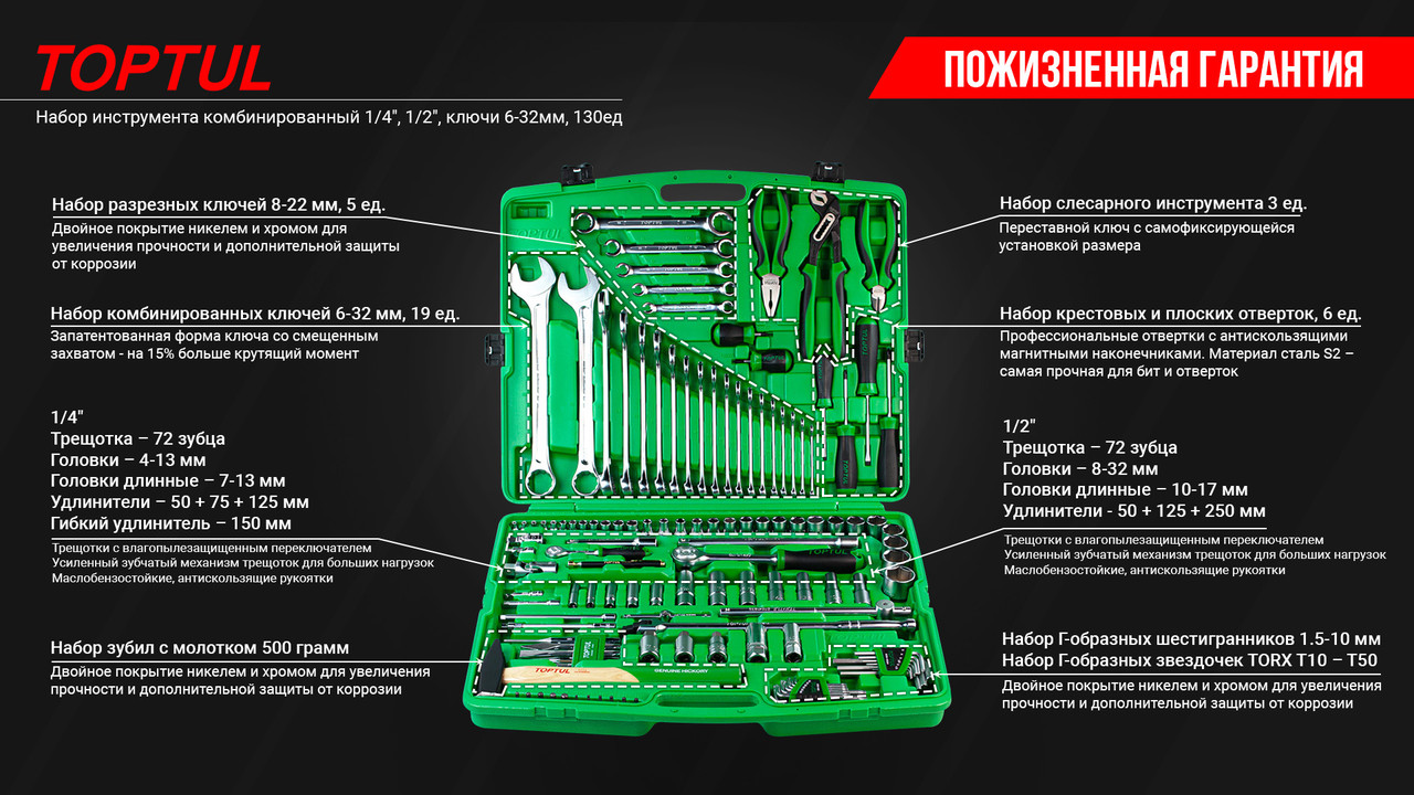 TOPTUL GCAI130T - идеальный набор для профессионального использования.
