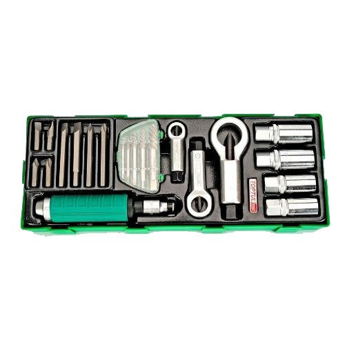 Всі набори інструментів TOPTUL високої якості в даний час розроблені з 2 взаємозамінними розмірами вкладишів (A і B), що дозволяє користувачам легко комбінувати і поєднувати найбільш підходящий і необхідний інструмент у кожному ящику.