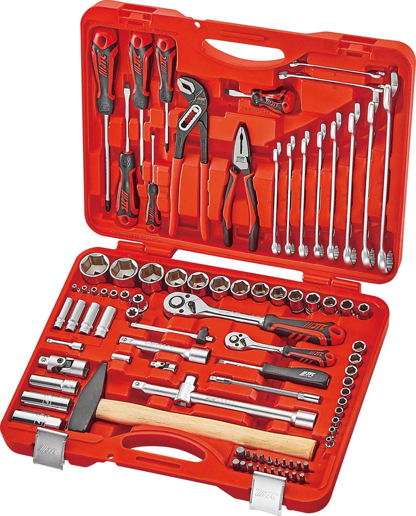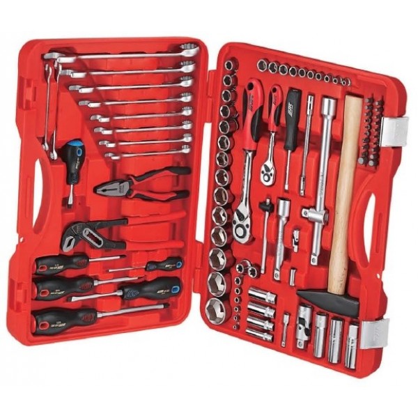 Опис Набір інструментів в кейсі JTC 90 предметів Характеристики У комплекті: 10 шт. головки 1/4 (6РТ): 4, 5, 6, 7, 8, 9, 10, 11, 12, 13 мм. 4 шт. головки глибокі 1/4 (6РТ): 8, 10, 12, 13 мм. 6 шт. головки TORX 1/4;: Е4, Е5, Е6, Е7, Е8, Е10. 2 шт. головки TORX 1/2;: Е12, Е14. 14 шт. головки 1/2 (6РТ): 10,12, 13, 14, 15, 17, 18, 19, 21, 22, 24, 27, 30, 32 мм. 1 шт. тріскачка 1/4;. 1 шт. кардан 1/4; 1 шт. комір-викрутка 1/4;, 150 мм. 1 шт. подовжувач 1/4; 50 мм. 1 шт. кардан 1/4; 1 шт. подовжувач гнучкий 1/4; 150 мм. 1 шт. комір з плаваючою головкою 113 мм. 1 шт. тріскачка 1/2;. 2 шт. подовжувач 1/2; 125 мм. та 250 мм. 1 шт. кардан 1/2; 1 шт. свічкова головка 1/2; 14 мм. (12РТ) 2 шт. свічкова головка 1/2; 16 мм. (6РТ) та 21 мм. (6РТ) 1 шт. перехідник 3/8; (F) х1/2; (М). 20 шт. біти 1/4;: (S2) 4 шт. SPLINE: М6, М8, М10, М12. 7 шт. TORX: Т10, Т15, Т20, Т25, Т27, Т30, Т40. 3 шт. РН: РН1, РН2, РН3. 6 шт. HEX: 1.5, 2, 3, 4, 5, 6 мм. 10 шт. ключ ріжково-накидний: 8, 10, 12, 13, 14, 15, 17, 19, 21, 24 мм. 1 шт. пасатижі 7?. 1 шт. кліщі переставні 250 мм. 1 шт. молоток 500 г. 6 шт. викруток: 3 шт. РН: РН1х75 мм., РН2х100 мм. РН3х150 мм. 3 шт. SL: 3х75 мм, 6.5х38 мм. (укорочений), 6.5х100 мм. ;
