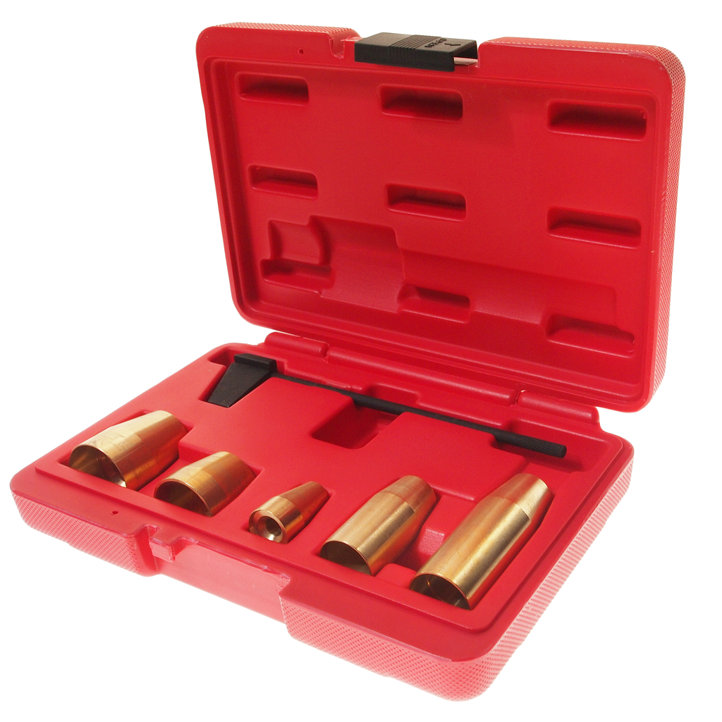 Опис Призначений для встановлення насос-форсунок та ущільнювальних кілець до них. Інструмент запобігає пошкодженню ГБЦ та насос-форсунок. Застосування: VW Phaeton and Touareg для 2003 р.в., Т5 для 2004 р.в. (5 та 10-циліндровими дизельними двигунами). Touareg для 2004 р.в. Audi A3 для 2004 р.в. (4-циліндровими/4-клапанними дизельними двигунами). Комплектація набору для насос форсунок VAG TDI PD Установчий калібр OEM VAGT10210 Монтажна втулка з кільцем ущільнювача, латунна, OEM VAG T10056 / 1 Монтажна втулка з кільцем ущільнювача, латунна, OEM VAG латунна, OEM VAG T10056 / 3 Монтажна втулка з кільцем ущільнювача, латунна, OEM VAG T10164 / 1 Монтажна втулка з кільцем ущільнювача, латунна, OEM VAG T10164 / 2 ;