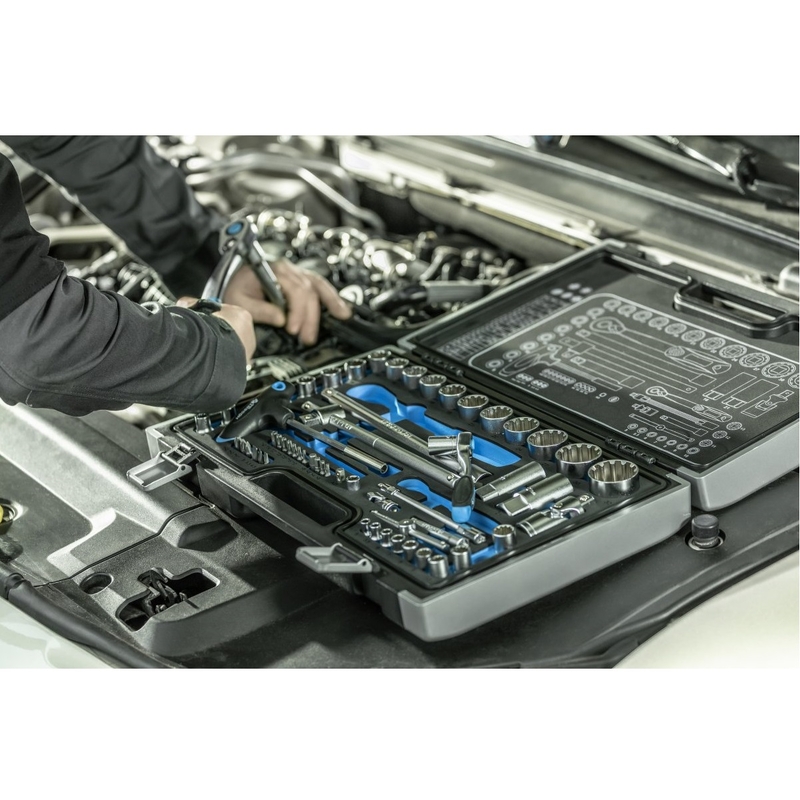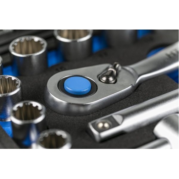Набір торцевих головок, викруткових біт, аксесуарів 1/4” та 1/2”. Всі торцеві головки були ковані за стандартом і мають 12 клинів. Це спеціальна форма дозволяє підібрати головки до шестигранних, дванадцятигранних болтів та гайок, torx, spline, квадратних та дюймових розмірів.