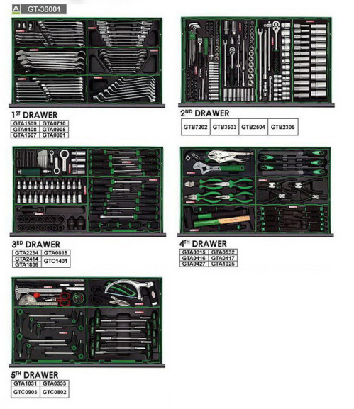 Набір інструментів у візку TOPTUL 8 секцій 360 од. JUMBO GT-36001