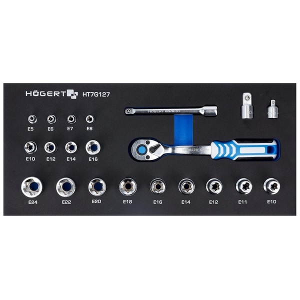 - HT1A884 (торцеві головки 1/4 ": E5, E6, E7, E8; 3/8»: E10, E12, E14, E16; перехідник HT1A771), перехідник HT1A772, подовжувач 3/8 "HT1A714, тріскачка 3/8" HT1R328 , HT1A880 (торцеві головки 1/2 ", E10, E11, E12, E14, E16, E18, E20, E22, E24)