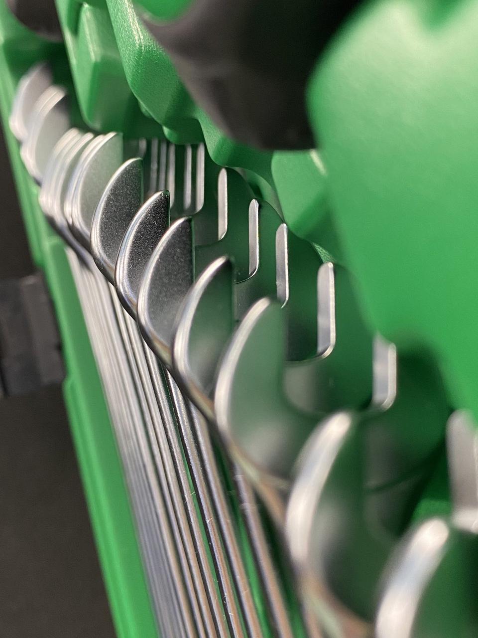 Весь інструмент у кейсі щільно замикається у своїх гніздах, що виключає випадання.