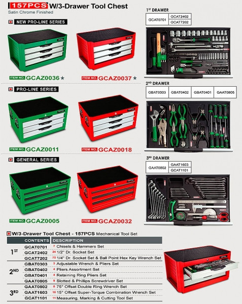 Ящик для СТО, інструмент TOPTUL (Pro-Line) 3 секції 157 од. GCAZ0011