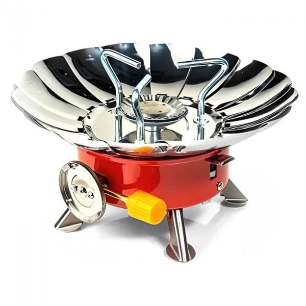 Пічка Лотос захист вiд вiтру - призначена для використання у важких умовах при вітряній погоді, низьких температурах і атмосферних опадах. Форма цієї газової пальники надійно вкриває полум'я від впливу вітрових поривів, що дозволить Вам приготувати їжу, чай або кава не дивлячись ні на що.