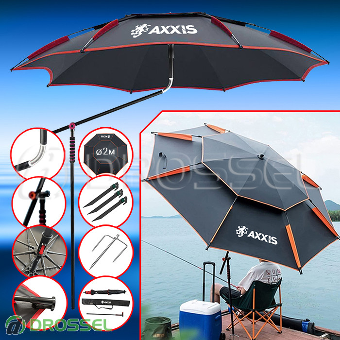 Парасолька рибалки "Professional-2" для пікніка, (з регулюванням нахилу) діаметр 2,4 м, тканина 210D AXXIS (ax1218)