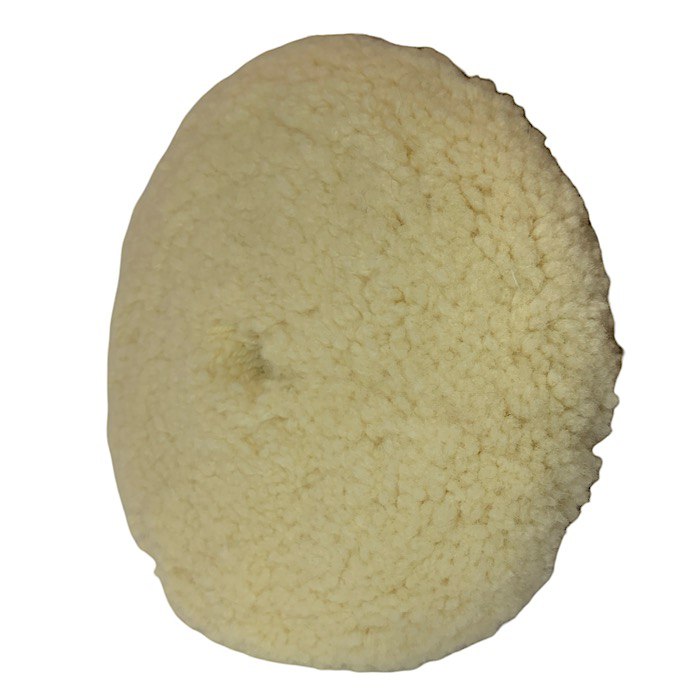 Шерстяний однобічний полірувальний круг БІЛОГО кольору, призначений для першого етапу. Завдяки скрученим волокнам шерсті забезпечує максимальний «зріз» (корекцію фарби) та дає мінімальний нагрів поверхні ЛФП. Має спеціальне центроване кільце для платформи Ø 150 мм