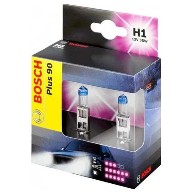 Автолампа (комплект) галогенна BOSCH H1 12В (1987301073) PLUS 90